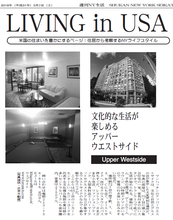 古本不動産の物件を、週刊NY生活さんにご紹介いただきました!