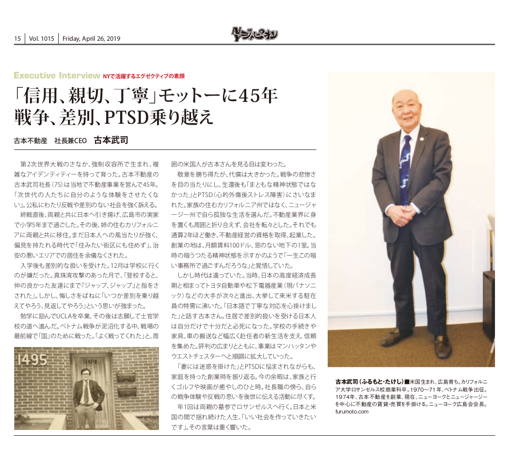 2/6 古本会長が、フレッド・コレマツの日について最新動画をアップしましたので、是非ご覧ください。古本会長と多数の政府関係者、コミュニティー・リーダー、在ニューヨーク総領事山野内大使様の多大なるご協力により、来年よりめでたく、ニュージャージー州全域において、1月30日が正式にフレッド・コレマツの日として制定される運びとなりました。これに関連して、週刊NY生活紙とJAVA(日系アメリカ人退役軍事協会)にそれぞれ記事が掲載されました。