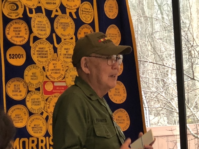 Last week’s speaker was Tak Furumoto on being Japanese in USA and Japan during WWII.Tak’s family had emigrated to the USA with his grandfather in 1911. His grandparents returned to Japan before the war had started but Tak’s father stayed. Tak’s father had started out as a migrant farm worker who began a business wholesaling produce and was successful until he was forced to give it up to go to a Japanese-American intern-ment camp in Tule Lake, CA. The families were given 10 days notice and only allowed 1 suitcase. Tak was born in the internment camp in 1944 and the family, his parents and 3 sisters, were incarcer-ated there for 4 years. The camp had aprox. 18,000 people in it and everyone was in barracks that slept 8. Tak commented that other Axis power nationalities were not put into internment camps like the Japanese. He believes it was because of the shock of the Pearl Harbor attack that the USA reacted so drastically and uncharacteristically.Tak’s family moved from the internment camp back to his father’s native Hiroshima, where his grand-parents were, following the bombing and his par-ents were told they could not emigrate again to the USA.In Hiroshima Tak and his sisters found it hard to make friends because they were, in the eyes of many Japanese, Americans and caused the suffer-ing in the area. Tak recalls care packages that arrived and his sisters would take all the candy but he got to keep the marbles. Tak enjoyed this be-cause the other kids would play with him when he had marbles but not otherwise. Tak also recalled a cowboy outfit that he received and he wore around the neighborhood and told everyone he would wear it all the time but his mother had to sell it to help pay for food for the family. This made Tak sad and he cried all day but he understood eventually why his Mother had done it.One thing his parents always impressed on his sisters and hm was to study and do well in school so they could do better than his parents had. So both he and his sisters studied very hard.In 1952 one of his sisters emigrated back to the USA. In 1956 the rest of the family relocated back to the USA in Los Angeles. There was a loophole in the immigration law that allowed children to bring siblings and parents to the USA and that is how his parents were allowed back. There was still a stig-ma being Japanese in the L.A. area but the family felt it was better than being back in Japan.Tak graduated from UCLA and then volunteered for Vietnam. He went to OCS in 1968, he met his future wife Carolyn at this time, and was assigned as an intelligence unit. He was stationed in Vi-etnam from 1970-71 and received a Bronze Star during his service. When he returned from Vi-etnam in 1971 he moved to Fort Lee, NJ. He did not find a lot of opportunity for work so he opened the first Japanese American real estate firm in Ber-gen County. The business was rough at first as Tak was dealing with both PTSD and agent orange exposure. He said that his wife Carolyn was his rock and without her he would not had been able to be where he is today. Tak became a success and found a niche helping Japa-nese compa-nies and fami-lies with reloca-tion services in the NY/NJ area. He now is in his 46th year and has offices in White Plains, Manhattan, and Fort Lee and 50 licensed staff.Tak had more stories but we ran out of time. An interesting talk. Thank you to the Furumoto family for sharing it with us.